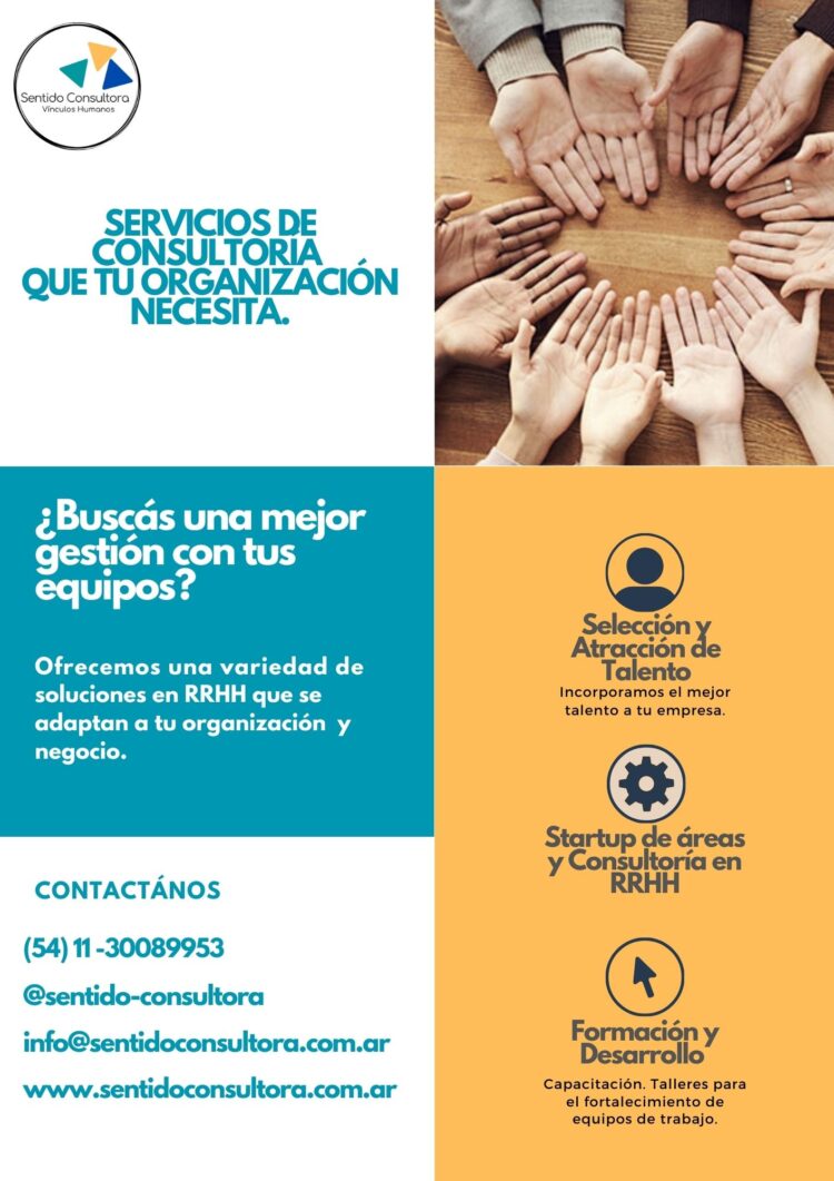 SOMOS UNA CONSULTORA DE RRHH. Acompañamos al ecosistema Pymes y emprendedores en el diseño e implementación de estrategias de desarrollo alineadas con su propósito y valores, a partir del despliegue del potencial de las personas y de la cultura de trabajo que requieren sus negocio-Servicios: Selección de personal- Capacitación- Consultoría en RRHH