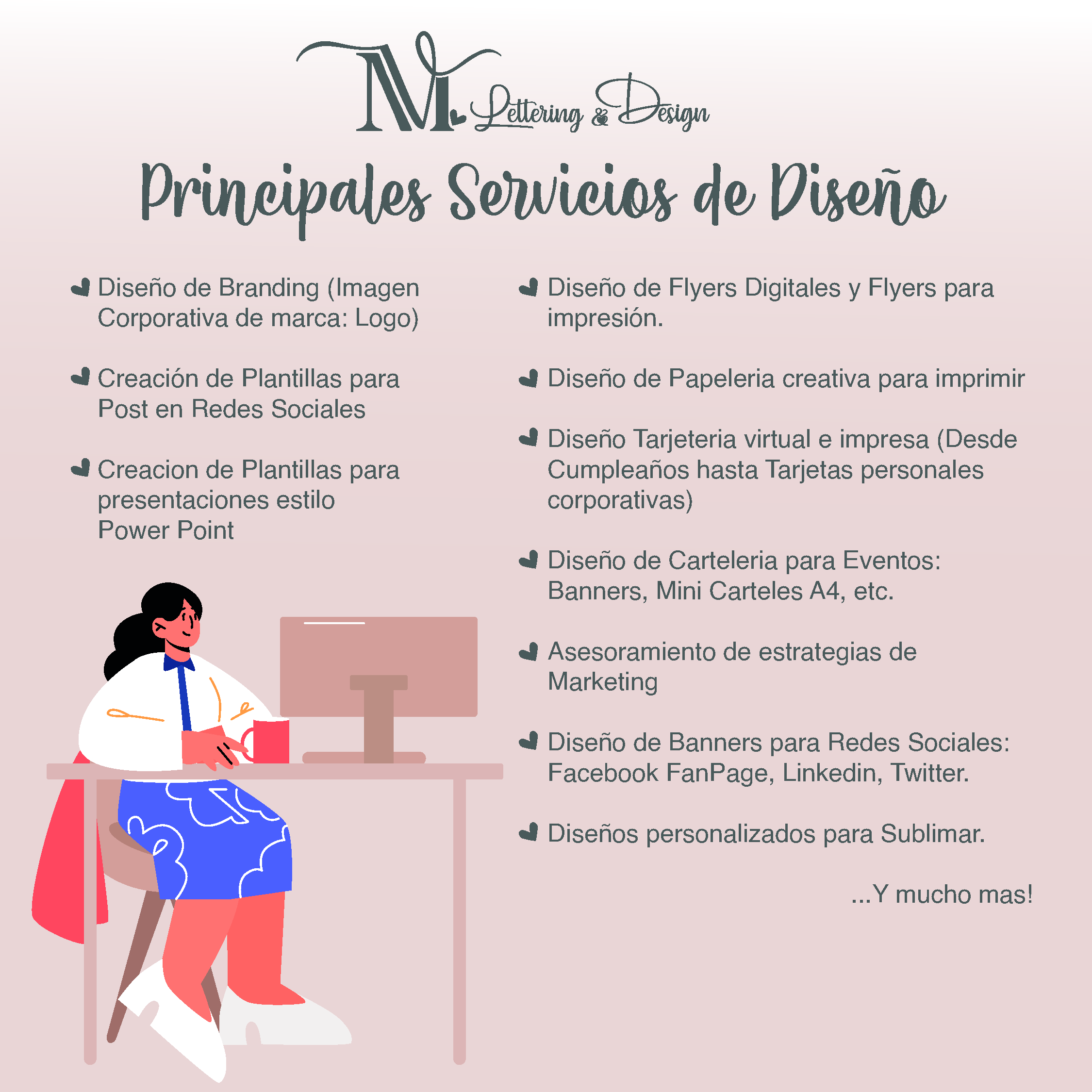 Soy una Diseñadora Gráfica con muchas ganas de ayudar a otros emprendimientos a visualizarse de manera efectiva y adecuada según sus necesidades. Desde muy chica siempre tuve la vena emprendedora, pero recien al dia de hoy me dedico casi al 100% a mi emprendimiento. Tambien tengo varios Ebooks de Lettering y de dibujos para colorear.