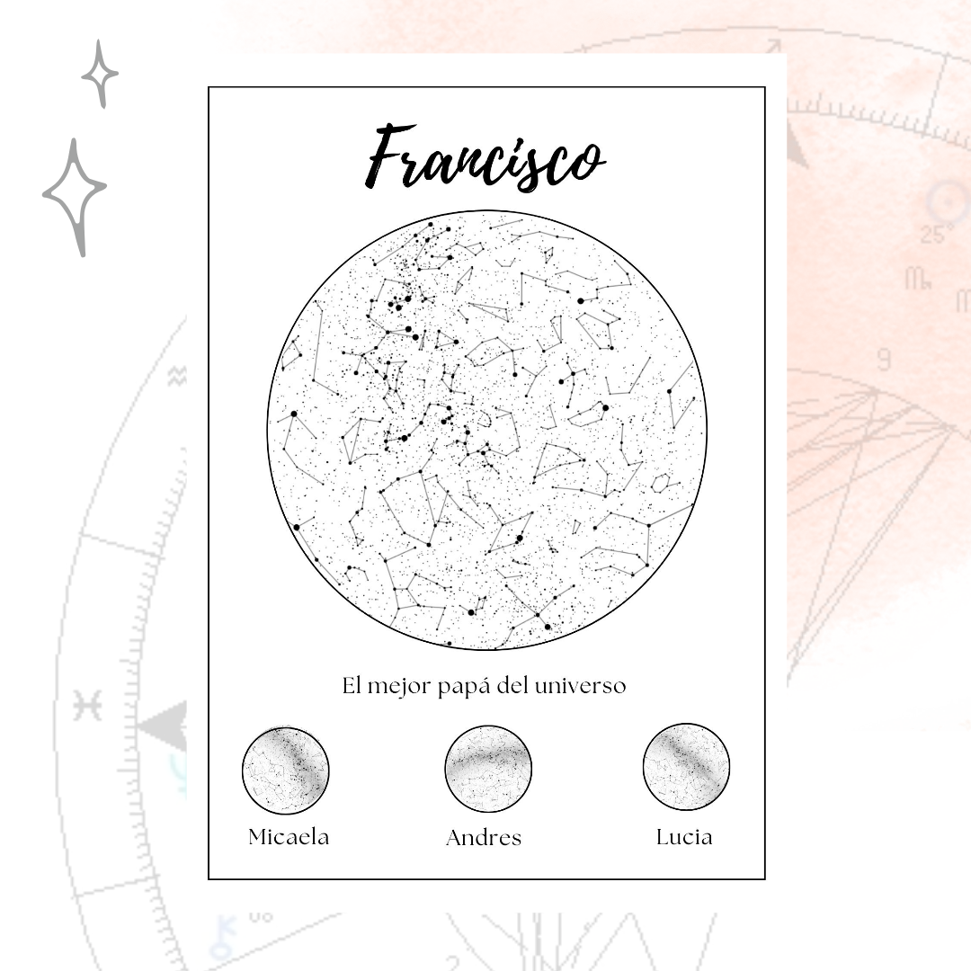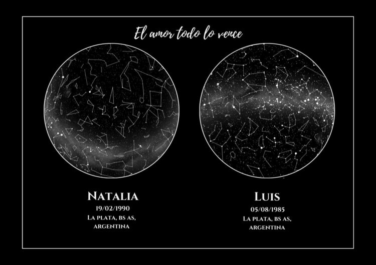 Y también realizo Mapas estelares, personalizados con una frase que identifique a la persona/s.